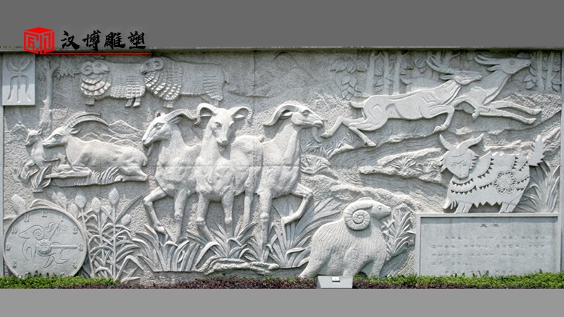 生肖羊雕塑_户外景观浮雕_大型石雕