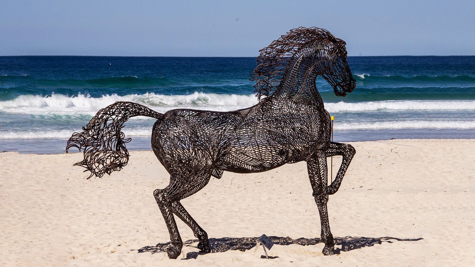 不锈钢镂空马雕塑,不锈钢海边雕塑制作,不锈钢创意雕塑定制