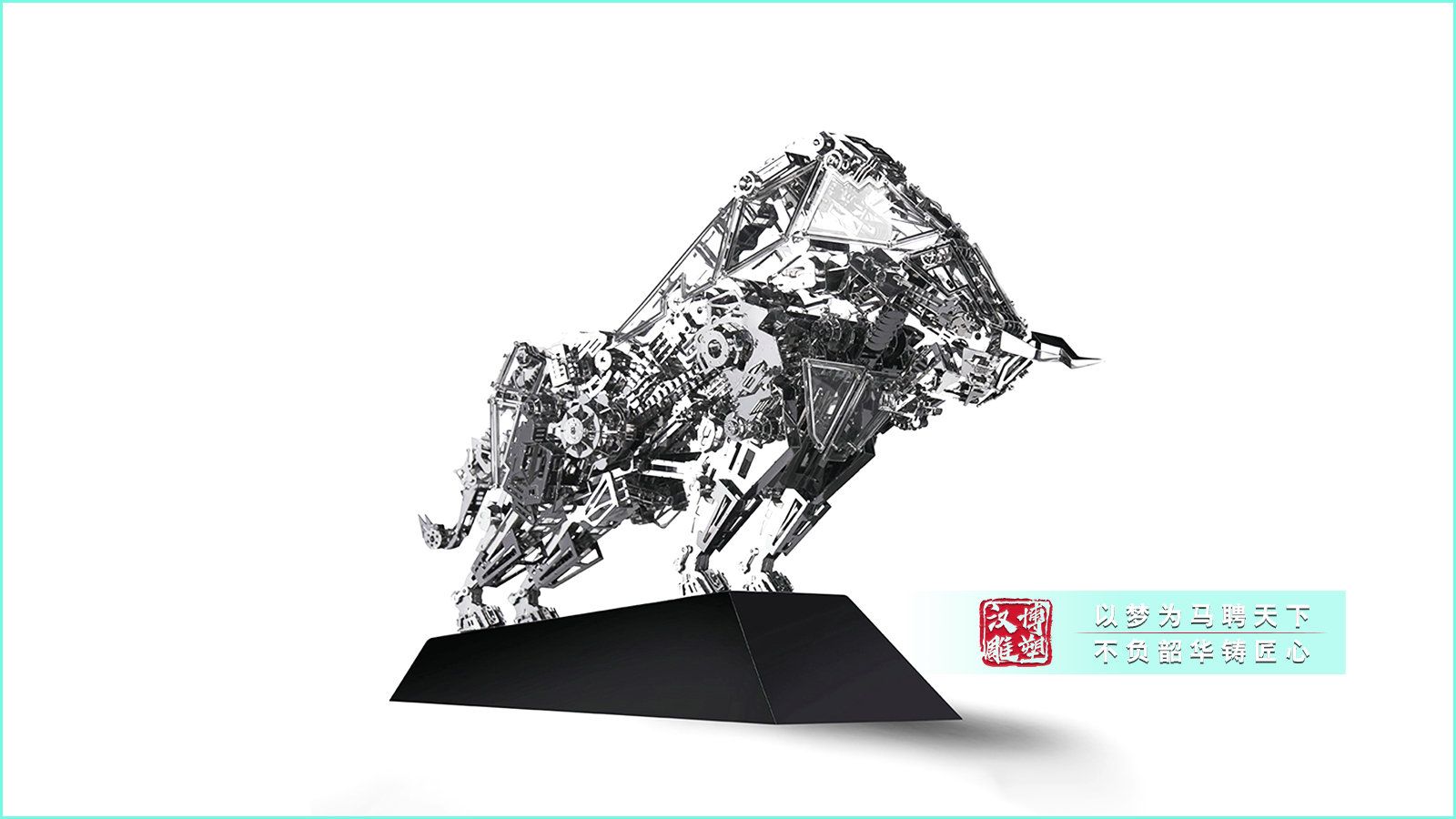 同时,雕塑也可以作为一种文化符号,传达出特定的价值观和精神内涵。它可以代表一个城市的精神风貌,或者是一个企业的文化理念。通过不锈钢抽象牛雕塑,人们可以更加直观地感受到这些价值观和精神内涵,从而产生共鸣和认同感。在艺术创作中,不锈钢抽象牛雕塑也为艺术家们提供了广阔的创作空间。艺术家们可以通过对牛的形态、特征和精神的理解,运用各种抽象的表现手法,创作出具有独特个性和艺术价值的作品。这些作品不仅展示了艺术家们的创造力和才华,也为观众带来了全新的艺术体验。总之,不锈钢抽象牛雕塑是一种充满魅力和意义的艺术形式。它以简洁的线条和现代的材质,展现出牛的力量与精神,为人们带来了视觉上的享受和精神上的鼓舞。无论是作为城市景观还是艺术作品,它都具有重要的价值和意义。让我们在欣赏不锈钢抽象牛雕塑的同时,也能从中汲取牛的勤劳、坚韧和奉献精神,为我们的生活和事业注入新的动力。不锈钢抽象牛雕塑的存在,不仅仅是一种艺术的表达,更是一种对生命的赞美。它用简洁的形式诠释了牛的力量和坚韧,让人们在欣赏艺术的同时,也能感受到生命的顽强与不息。牛,作为一种动物,一直以来都被人们赋予了许多美好的品质。它勤劳、朴实、忠诚,是人类的好帮手。不锈钢抽象牛雕塑正是抓住了牛的这些品质,通过抽象的手法将其展现出来。雕塑的线条简洁而有力,仿佛是牛的力量在流动。它没有过多的细节,却能让人感受到牛的强大。这种简洁的表现手法,让人们更加专注于雕塑所传达的精神内涵,而不是被繁琐的细节所干扰。