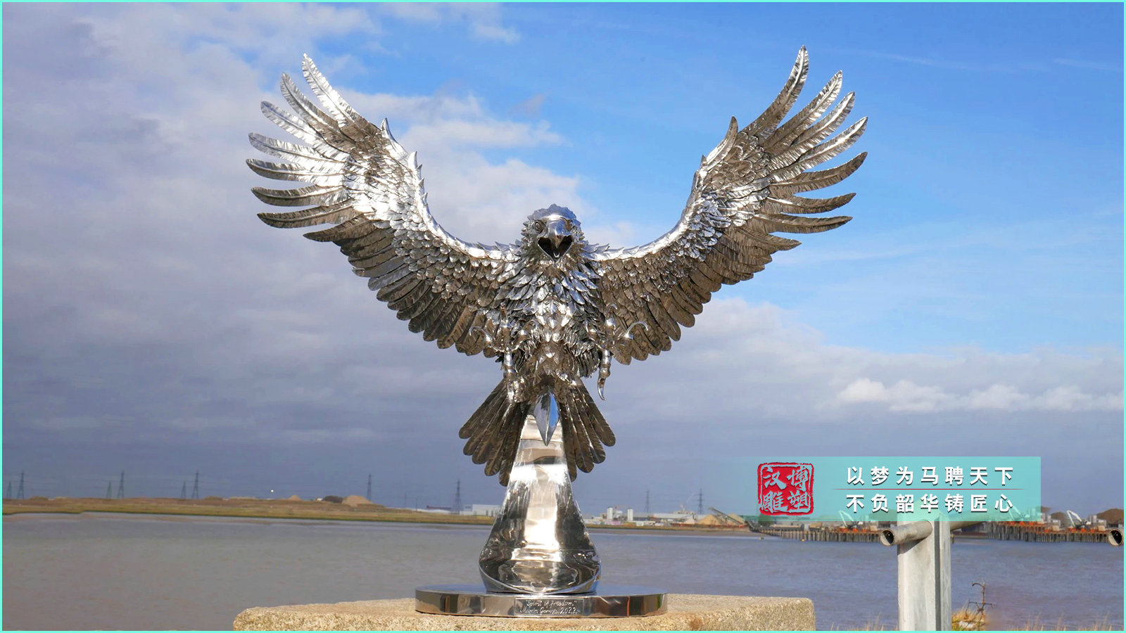 在不同的场景中,不锈钢镜面老鹰雕塑都能发挥出独特的作用。在城市广场和公园中,它可以成为一道亮丽的风景线,吸引人们的目光,为城市增添一份艺术气息。在企业和商业场所中,不锈钢镜面老鹰雕塑可以象征着企业的实力和进取精神,激励员工们奋发向前,追求卓越。在私人庭院和花园中,它可以作为一种独特的装饰品,为家庭增添一份艺术氛围和文化内涵。不锈钢镜面老鹰雕塑的制作过程需要经过多道复杂的工序。首先,雕塑家们需要根据设计图纸,使用不锈钢材料进行切割、焊接和打磨等处理,逐步塑造出老鹰的形态。然后,对雕塑表面进行镜面处理,使其光滑如镜,能够反射出周围的环境和光线。在制作过程中,雕塑家们需要具备高超的技艺和丰富的经验,同时还需要有足够的耐心和毅力,才能打造出一件完美的不锈钢镜面老鹰雕塑作品。从艺术角度来看,不锈钢镜面老鹰雕塑具有很高的审美价值。不锈钢材料的光亮和现代感与老鹰的威严和霸气相结合,创造出一种独特的艺术效果。雕塑作品的造型逼真、细节细腻,能够让人们感受到雕塑家们的精湛技艺和艺术创造力。同时,不锈钢镜面的反射效果也为雕塑增添了一份神秘和奇幻的色彩,使人们在欣赏雕塑的同时,也能感受到艺术的魅力和力量。