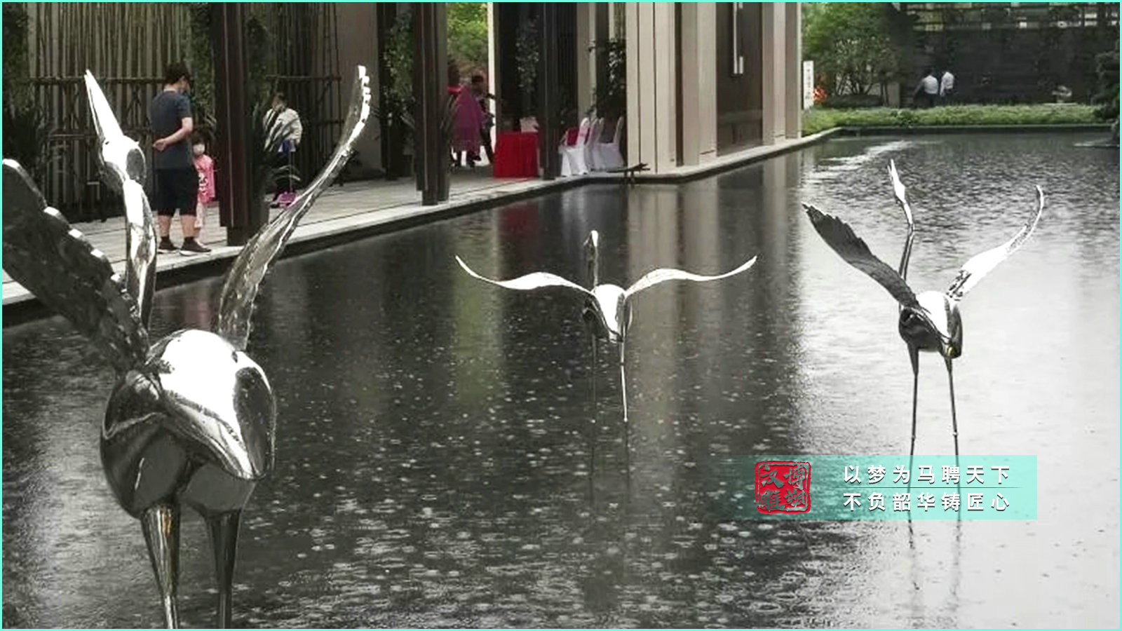 不锈钢仙鹤雕塑,户外水景雕塑,大型艺术品