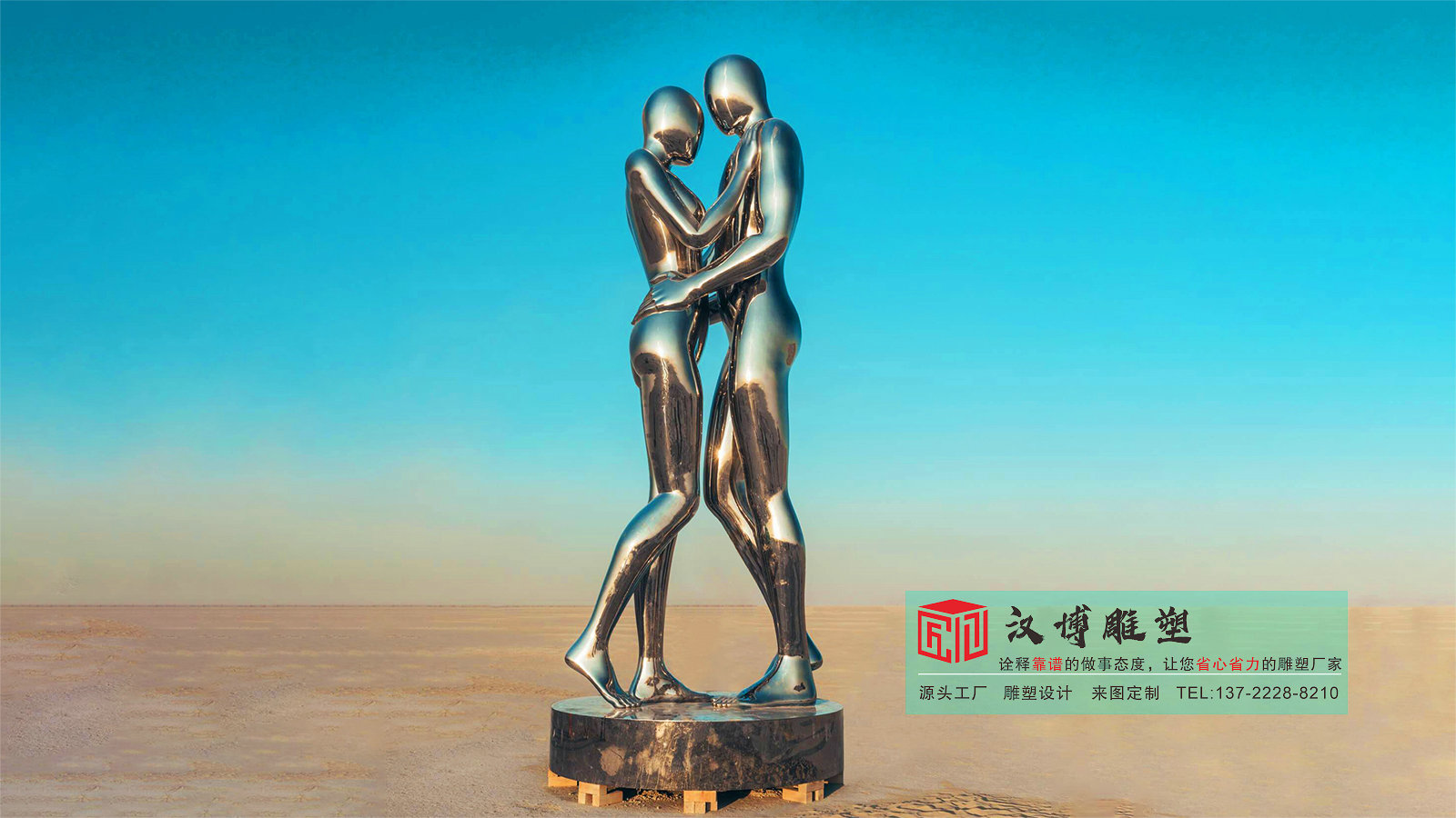情侣拥抱镜面雕塑摆件,不锈钢人物雕塑加工,户外雕塑厂家